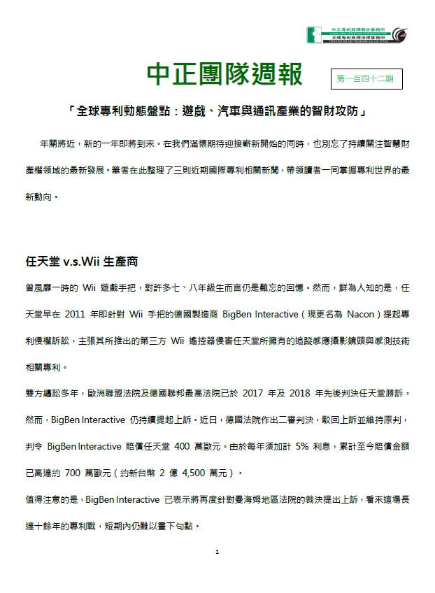 年關將近,新的一年即將到來。在我們滿懷期待迎接嶄新開始的同時,也別忘了持續關注智慧財產權領域的最新發展。筆者在此整理了三則近期國際專利相關新聞,帶領讀者一同掌握專利世界的最新動向。