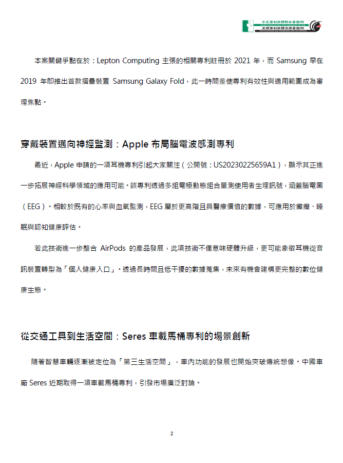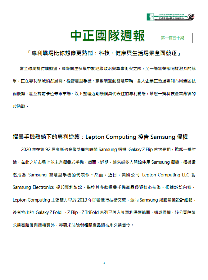 2026年第一季即將結束,眾多國際企業在盤點財務與營運績效之際,也同步檢視品牌、技術與市場布局等關鍵無形資產。近期多起商標申請與專利訴訟案例,顯示企業在創新競爭與法遵壓力並行的環境下,正積極透過智慧財產策略鞏固市場地位,並為下一階段發展預作準備。本期中正週報將聚焦三則橫跨AI、電動車與影像科技產業的案例,從商標布局到專利攻防,解析企業如何在不同發展階段運用智慧財產權作為競爭工具。